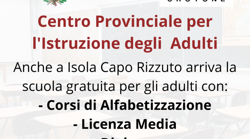 Sono ufficialmente aperte le iscrizioni per il Centro Provinciale per l’istruzione degli Adulti nel territorio di Isola Capo Rizzuto (CPIA)