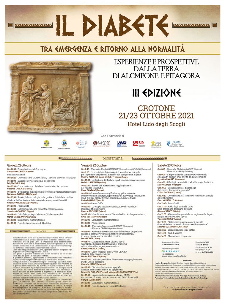 A CROTONE LA III° EDIZIONE DEL CONGRESSO “IL DIABETE TRA EMERGENZA E RITORNO ALLA NORMALITA’ – ESPERIENZE E PROSPETTIVE DALLA TERRA DI ALCMEONE E PITAGORA”