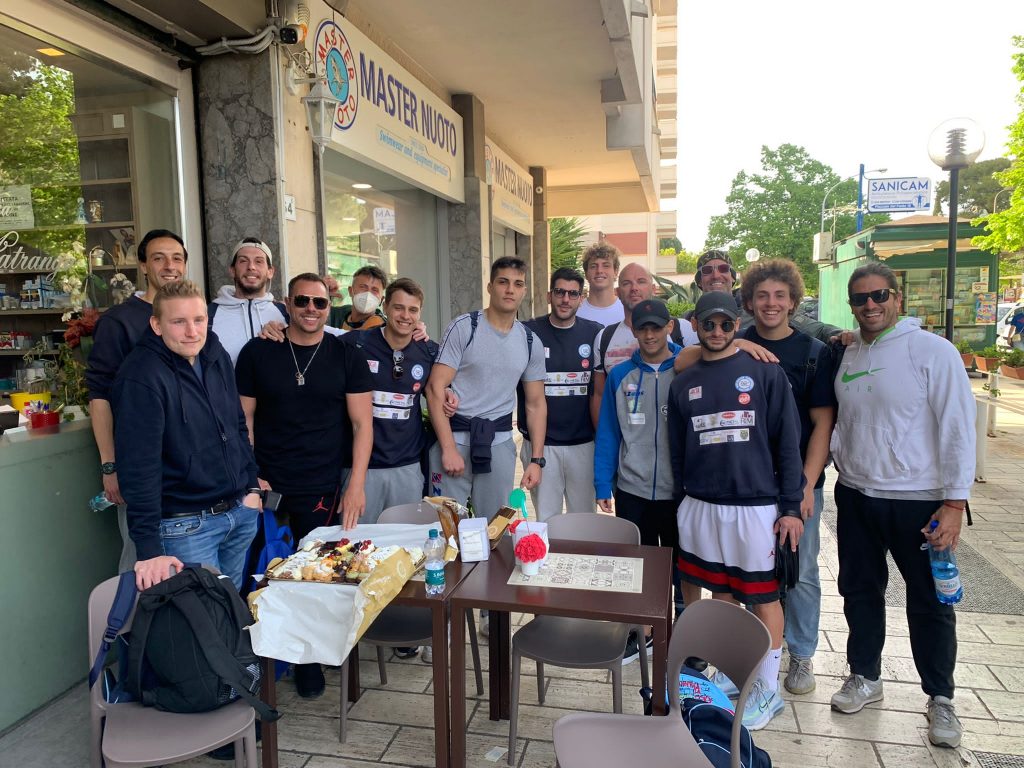 Espugnata PalermoSimone Sibilla – dal primo all’ultimo secondo ad incoraggiare i suoi compagni, a fornirgli supporto morale ed incoraggiamento – Dodò Ruggiero – reduce dal ritiro ad Ostia in collegiale con la nazionale di categoria, sbarcato da Roma qualche ora prima – Giuseppe Candigliota – aveva chiesto ai suoi compagni un regalo di compleanno all’altezza del capitano – Mattia e Nicolas Cavallaro – giovanissimi giocatori e lottatori della nostra squadra – i mancini Alessandro Caliogna e Raffaele Cusmano – un millimetro un goal, qualità, visione, regia, fame – Ruben Riolo, Marco Tagliaferri, Enrico Trebino – giocatori ovunque, sempre a sostegno del compagno, sempre pronti a dare cambi, a rincorrere l’avversario anche per conto dei compagni, con l’intelligenza di farsi trovare pronti al momento giusto – Gabriel Namar – sempre in mezzo, sempre lì, a prendere colpi spalle alla porta, a dare profondità, a creare superiorità numeria e che goal! – Renè Bezic e Massimo Giacoppo – il nostro valore aggiunto in termini di tutto: classe, qualità, impostazione, intelligenza, regia, forza di volontà, esempio di squadra. E per ultimo, il nostro Mister Francesco Arcuri: uno stratega senza eguali: prepara le partite di notte. legge, studia, guarda immagini video. E al cospetto di un guru della pallanuoto italiana quale è Mister Malara, tecnico della Waterpolo Palermo, dimostra a tutti di che pasta è fatto.