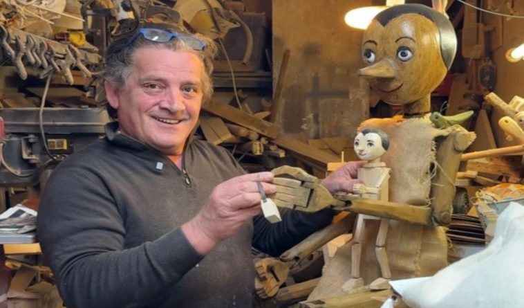 Un laboratorio artigianale di Cosenza, adornato di trucioli di legno e Pinocchi in fase di creazione, ha attirato l’attenzione del