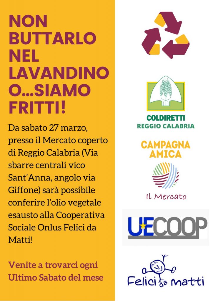 La collaborazione con Coldiretti Calabria , vedrà presente sabato 26 marzo p.v. e tutti gli ultimi sabati di ogni mese nel mercato Coperto di Campagna Amica in Via Sbarre Centrali (Angolo Giffone) a Reggio Calabria la cooperativa sociale “Felici da Matti”, un esempio di sostenibilità e innovazione che investe nel sociale e sulla salvaguardia dell’ambiente in un contesto di filiera. La volontà è di estendere la presenza anche ai mercati coperti di Catanzaro e Cosenza. Con sede a Roccella Ionica (RC), la cooperativa nasce nel 2003 ad opera di sei donne ed un sacerdote uniti dal comune intento di voler creare posti di lavoro e riuscire a reintegrare nella società soggetti svantaggiati. L’ispirazione per un’attività dedita a temi sociali trova le basi anche dalle parole profetiche di don Mario Operti che ha lanciato il progetto Policoro: «Non esistono formule magiche per creare lavoro…occorre investire nell’intelligenza e nel cuore delle persone». Da questi presupposti inizia quindi un percorso di formazione che porta alla costituzione di “Felici da Matti”: una cooperativa sociale di Tipo B che ad oggi è composta da 8 soci. “Questi aspetti fanno dell’azienda un punto di riferimento sul territorio reggino; ancora una volta il buon senso, la dedizione al lavoro e l’amore per la propria terra fa emergere imprese di tutto rispetto ed esemplari su questo territorio.’’ È quanto afferma il direttore della Coldiretti Reggio Calabria Pietro Sirianni presentando la Cooperativa Felici da Matti. Nel 2013 Felici da Matti organizza una campagna dal nome “Non buttarlo nel lavandino o… siamo fritti” volta alla raccolta dell’olio vegetale esausto e, di conseguenza, alla sensibilizzazione verso tematiche fondamentali come la salvaguardia dell’ambiente; ‘’L’olio fritto -chiariscono i soci- non è biodegradabile e non è organico, quindi se disperso in acqua forma un “velo” dello spessore dai 3 ai 5 centimetri che impedisce ai raggi solari di penetrare causando ingenti danni all’ambiente. “Felici da Matti”, recuperando un’antica tradizione, ha deciso di trasformare l’olio esausto in sapone solido e liquido: Linea BERGOLIO Eco 3 – spiega la presidente della cooperativa associata a Uecoop Teresa Nesci. L’iniziativa è ancora oggi attiva: l’olio vegetale esausto viene preso in carico dalla cooperativa sia tramite raccolte itineranti organizzate a cadenza mensile in diversi comuni calabresi, che tramite raccoglitori stradali posizionati lungo il nostro territorio. Successivamente nasce ”Naturali terre di Calabria’’: una linea di detergenti liquidi e di saponi all’olio di oliva e burro di Karitè, tutti prodotti aromatizzati esclusivamente con i profumi della nostra Terra quali bergamotto, limone, mandarino verde e gelsomino. Dato l’interesse mostrato dalla Cooperativa rispetto a tematiche delicate e fondamentali, l’attività è stata premiata dapprima nel 2017 con il premio ‘’Amica dell’Ambiente’’ e, in seguito, nel 2018 presso la Fiera Ecomondo, evento dedicato al tema dei rifiuti e del riciclo; in quest’ultima occasione, come racconta uno dei soci Maria Teresa Nesci ‘’la Fondazione Sviluppo Sostenibile voluta e presieduta dall’ex Ministro all’Ambiente Edo Ronchi ci ha consegnato la targa come tra le 10 Imprese migliori nel settore Rifiuti Risorse in Italia’’. Soddisfazione per questa iniziativa è espressa anche dal responsabile regionale di Campagna Amica Mario Ambrogio, in quanto sempre più le iniziative nei mercati saranno vicine e sensibili, come in questa occasione, alle attività sociali e sostenibili proprio a sostegno di una forte sensibilità green”.