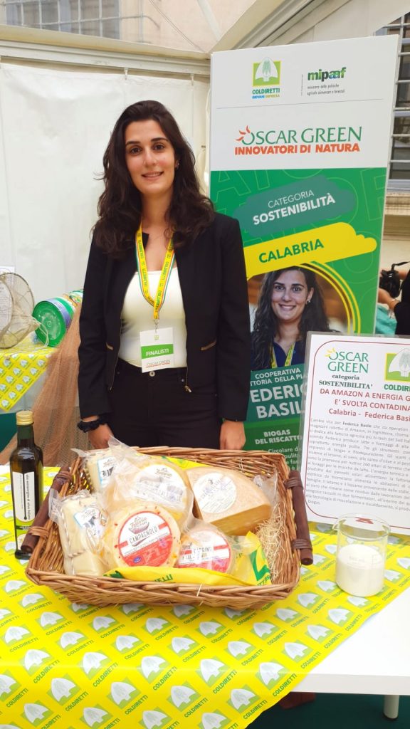 Dopo una dura selezione nazionale, l’imprenditrice calabrese Federica Basile della Cooperativa Agricola “Fattoria della Piana” che opera nella Piana di Rosarno, per la categoria “Sostenibilità” è salita sul podio del premio Nazionale Oscar Green che su iniziativa dei giovani della Coldiretti è stato consegnato ai vincitori durante la cerimonia di premiazione che si è svolta a Roma al Centro Congressi Rospigliosi, dove, alla presenza di rappresentanti delle Istituzioni Nazionali, con i giovani provenienti da tutte le regioni d’Italia si è consolidato il lorol’impegno concreto a combattere i cambiamenti climatici e salvare l’ambiente. Protagoniste assolute tante imprese condotte da giovani che hanno esposto straordinarie innovazioni nate durante la pandemia Covid dall’ingegno delle nuove generazioni e presentate all’Oscar Green, il salone della creatività Made in Italy. Giovani motivati che, hanno idee chiare in occasione di Youth4Climate che anticipa la riunione dei ministri della Cop26, la conferenza mondiale dell’Onu sui cambiamenti climatici in programma a Glasgow dall’1 al 12 novembre. La storia professionale ed imprenditoriale di Federica Basile è affascinante e un esempio per tanti giovani. Federica, ad un certo punto cambia vita, da operation manager nei magazzini robotici di Amazon, in Inghilterra, ritorna a Rosarno e si dedica alla fattoria agricola più hi-tech del Sud Italia. Nella sua azienda fa economia circolare, produce latte e formaggi di alta qualità, ma soprattutto energia pulita con i pannelli solari, impianto di biogas e fitodepurazione. Gli scarti di potatura, insieme al letame, al siero, alla sansa d’olive e al pesto di agrumi prodotti qui e in altre 80 aziende agricole che aderiscono alla cooperativa, sono la premessa per produrre gas biologico, con il 55% di metano e concime per nutrire 260 ettari di terreno che danno vita ai foraggi per le mucche da latte. L’energia termica e l’elettricità prodotta dai pannelli solari alimentano la fattoria, l’energia elettrica invece da biometano alimenta le abitazioni di oltre 6.500 famiglie. Per la creazione di biogas si utilizzano gli scarti della Fattoria di altre aziende agricole in un sistema di economia circolare che usa materie prime che prima erano un problema e le trasforma in una risorsa. Il letame e il liquame provenienti dalle stalle, unitamente al siero che rimane come residuo dalle lavorazioni del caseificio, vengono raccolti in due fermentatori, all’interno dei quali, grazie alla tecnologia di miscelazione e riscaldamento, avviene un processo di fermentazione anaerobica che produce biogas, un gas biologico che contiene una percentuale del 55% di metano. Attraverso il processo di fermentazione e la combustione del biogas tutti gli scarti agricoli vengono trasformati in fonte energetica, mentre i resti della fermentazione diventano concime organico per le coltivazioni di foraggi. La Fattoria della Piana è così un vero e proprio ecosistema autosufficiente, capace di produrre energia dagli scarti dell’industria agroalimentare e zootecnica, e di fornire una opportunità di smaltimento e di valorizzazione di biomasse che da rifiuto possono diventare risorsa e ricchezza per la nostra terra. Siamo sempre in prima fila, è il commento del Presidente di Coldiretti Calabria Franco Aceto che parla di aziende della nostra regione innovative e che già stanno facendo transizione ecologica riducendo l’impatto della chimica nei campi; questo processo che si sta affermando nei nostri territori – spiega – non assolve solo ad interessi aziendali ma anche collettivi. Per Coldiretti – conclude – abbiamo chiaro che ciò che fa bene all’agricoltore deve far bene anche alla società e alla natura”