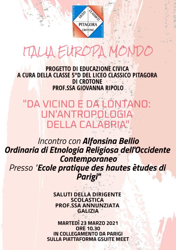 A tal proposito, nell’ambito delle attività di Educazione Civica del Liceo Classico Pitagora di Crotone del progetto “Italia-Europa-mondo” le classi 4D e 5D, coordinate dalla Prof.ssa Ripolo e con la partecipazione della Dirigente scolastica Annunziata Galizia, di Suor Loredana Pisani, Prof.ssa Rossana Cosentino e Maria Francesca Greco hanno approfondito per alcuni aspetti quello che corrisponde ad un disegno musicale e che nella dimensione dell’eredità del mondo lascia in dono un quadro polifonico e policromatico all’interno del quale l’uomo è protagonista. Il clima che è possibile respirare dalla manifestazione di quest’opera, che altro non è che la vicenda umana, è una ventata positivista; lo sguardo che si sofferma su questa è oggettivo e non eccessivamente critico, al massimo ha premura della cura del valore fisico e culturale che il singolo esercita non solo rispetto alla sua dimensione fisica ma anche in relazione alla sua humanitas e alla poliedricità che differenzia i singoli.