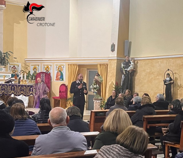 In questo quadro, ieri il Comandante della Stazione Carabinieri di Petilia Policastro, ha raggiunto la comunità della frazione Pagliarelle presso la Parrocchia Beata Vergine del Carmelo, dove al termine della Via Crucis celebrata da Don Argemiro Salazar, ha fornito consigli utili per imparare a difendersi da queste truffe. Durante l’incontro il Comandante ha illustrato le tecniche più comuni adottate dai truffatori, mettendo in guardia i cittadini su presunti tecnici e finti appartenenti alle forze dell’ordine che, con vari pretesti, tentano di introdursi nelle abitazioni o di estorcere denaro con l’inganno. Il militare dell’Arma ha più volte ricordato che nessun appartenente alle forze dell’ordine può chiedere del denaro, a qualsiasi titolo, per la risoluzione di un problema, elencando poi alcune regole fondamentali per proteggersi: