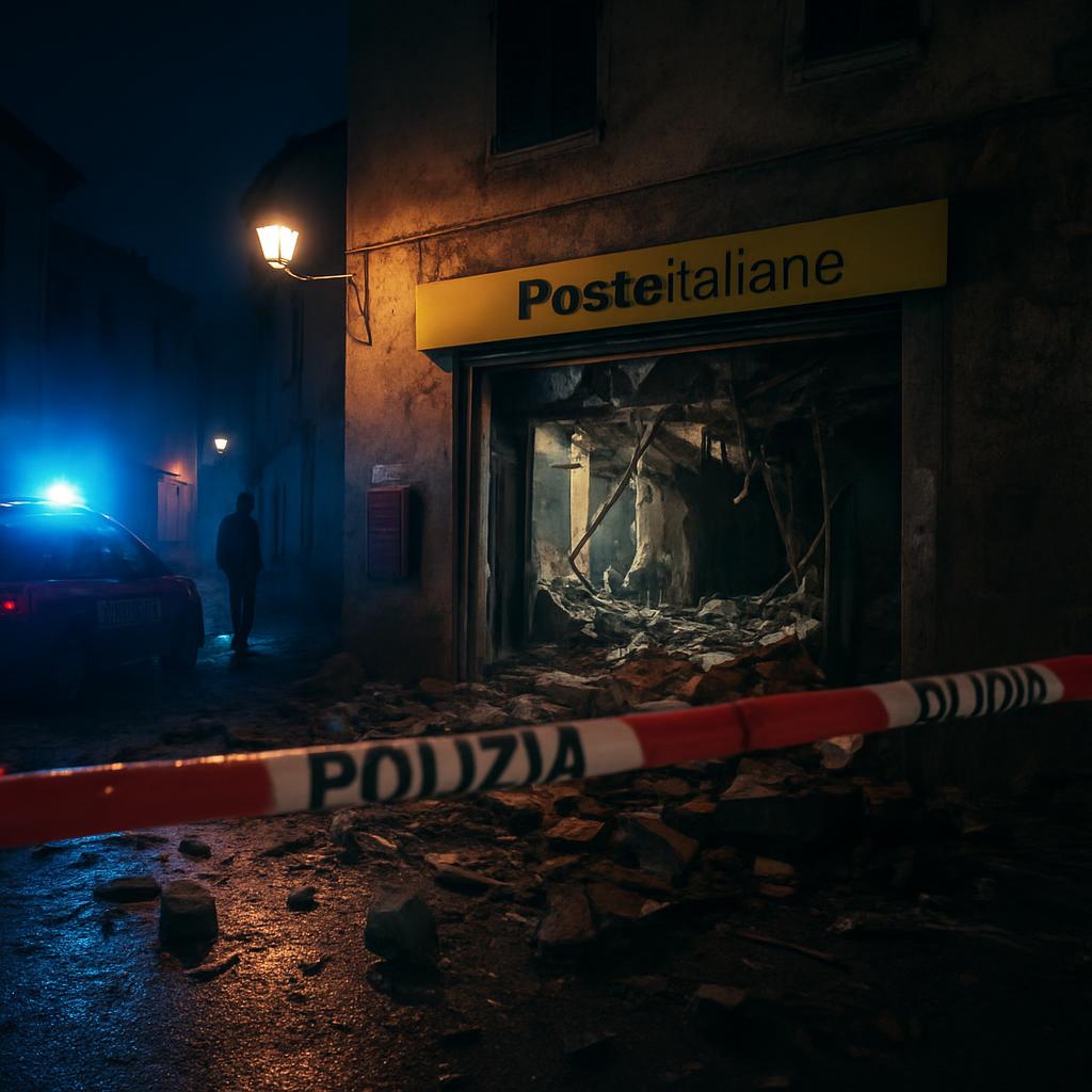 La deflagrazione ha devastato l’area d’ingresso dell’ufficio postale, danneggiando gravemente l’arredamento interno e causando ingenti danni strutturali alla struttura. Abitanti allarmati dal forte rumore hanno contattato il 112, consentendo l’intervento immediato dei carabinieri della Compagnia di Castrovillari.