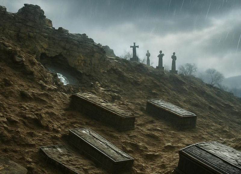 Una notte di piogge torrenziali ha inflitto una ferita profonda e dolorosa alla comunità di San Mauro Marchesato, in provincia di Crotone. Le precipitazioni di intensità straordinaria, che hanno scaricato al suolo oltre 180 millimetri di pioggia in appena 24 ore, hanno causato il cedimento strutturale di un’intera ala del cimitero storico del paese. La sezione crollata, il nucleo originario della struttura risalente a circa due secoli fa, non ha retto all’impatto della furia dell’acqua, franando rovinosamente e trascinando con sé decine di feretri nel dirupo sottostante.