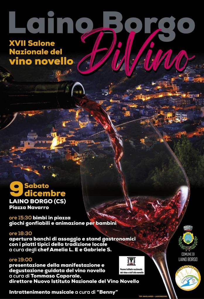 Piazza Navarro per un giorno si trasformerà in un grande salone del vino. A partire dalle ore 18:30 di sabato 9 Dicembre il centro storico di Laino Borgo accoglierà la fase conclusiva del XVII Salone nazionale del vino novello.