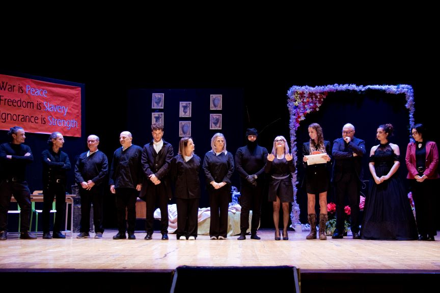 Il cuore pulsante dell’incontro è stato rappresentato da tre quadri teatrali, che hanno trasformato il pensiero in azione scenica. Lo smarrimento di fronte a un potere che banalizza il linguaggio in “1984” di Orwell, l’alienazione de “La metamorfosi” di Kafka e la disperata ricerca di autenticità in “Anna Karenina” di Tolstoj sono stati portati sul palco con intensità dagli attori Walter Vasta, Eugenio Nicolazzo, Ruggero Chieffallo e Chiara Vescio.