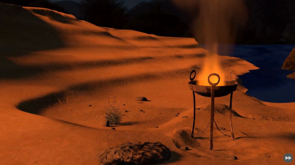 L’applicazione per realtà virtuale consente, per quanto possibile, di ricostruire un ambiente sacrale della civiltà greca e di un ambiente per un gioco tridimensionale alla scoperta di antichi reperti e di enigmi da risolvere.