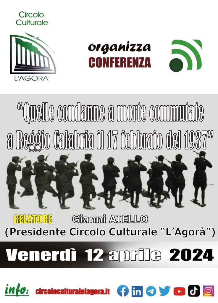 Il 17 febbraio del 1937, alle prime luci dell’alba, tre uomini con i ferri ai polsi vengono collocati faccia al muro e bendati, davanti al plotone del Regio Esercito italiano. Chi erano costoro? Come si arrivò a tali conseguenze?. L’esecuzione di quelle tre condanne a morte avvenne a seguito dell’omicidio di una giovane reggina, che dopo essere stata violentata, venne uccisa e sepolta nel letto di una delle fiumare di Reggio Calabria. In quell’area vennero rinvenute tre fosse, due delle quali erano state utilizzare per nascondere i cadaveri di due giovani. La fossa vuota, forse sarebbe stata utilizzata per un terzo omicidio o per sviare le indagini. Da qui l’acronimo del “processo delle tre fosse”, che vide coinvolti diversi componenti della malavita organizzata locale. Con l’entrata in vigore del “codice Rocco”, sull’intero territorio della Penisola italiana, nel decennio 1931-1940 vennero eseguite 65 condanne a morte, tre di queste pene capitali furono eseguite a Reggio Calabria. Dal quel ritrovamento, l’acronimo del “processo delle tre fosse”, che vide coinvolti diversi componenti della malavita organizzata locale. Nel greto di una delle fiumare della zona sud di Reggio Calabria, vennero ritrovati i corpi di due giovani: un uomo ed una donna. In un primo momento, le indagini, da parte degli investigatori, non sortirono gli esiti sperati, in quanto si pensò che il mandante di entrambi gli assassinii fosse un’altra persona, poi risultata innocente. Dopo il primo tentativo di depistaggio, architettato dagli autori del duplice omicidio, gli organi investigativi riuscirono a trovare il bandolo della matassa, smascherando l’autore di tali efferati delitti ed a farlo testimoniare contro i suoi complici. La sentenza, emessa dalla Corte d’Assise di Reggio Calabria nell’agosto del 1936, condannava all’esecuzione capitale, tramite fucilazione alla schiena, Francesco Mandalari, Domenico Artuso ed Antonino Destefano, per l’omicidio di Maria Teresa Giulia Ferrante, giovanissima donna che i tre avevano sequestrata, violentata ed uccisa. Queste alcune delle cifre che saranno state oggetto di analisi nel corso della conversazione organizzata dal Circolo Culturale “L’Agorà”. Tenuto conto dei protocolli di sicurezza anti-contagio e dei risultati altalenanti della pandemia di COVID 19 e nel rispetto delle norme del DPCM del 24 ottobre 2020 la conversazione sarà disponibile, sulle varie piattaforme Social Network presenti nella rete, a far data da venerdì 12 aprile.