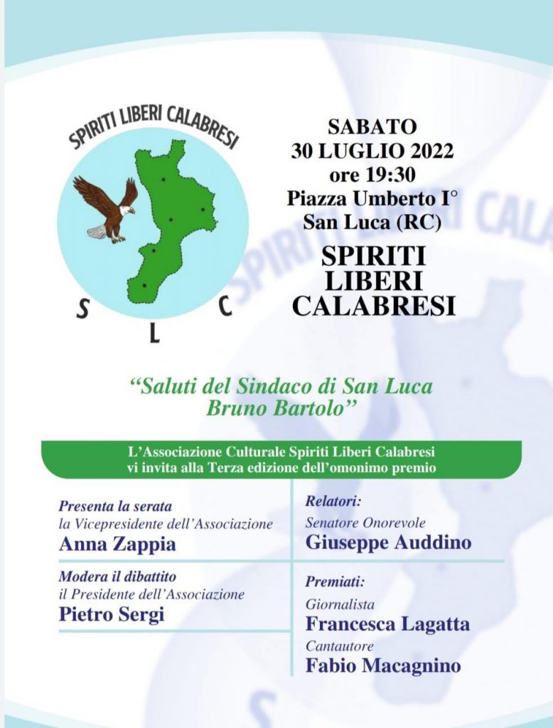 L’Associazione Culturale “spiriti Liberi Calabresi” comunica che sabato prossimo, 30 luglio 2022,