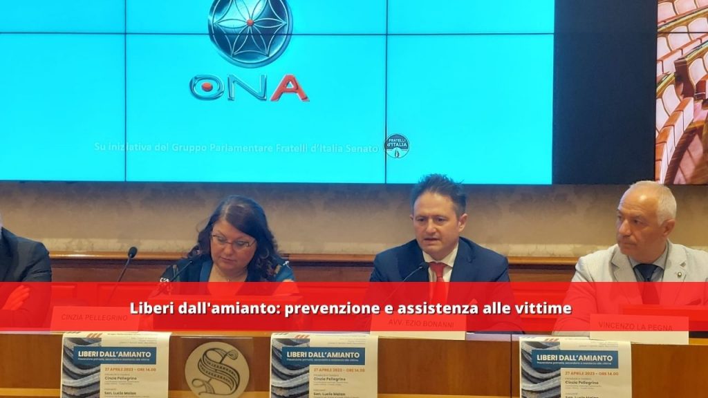 | L’evento “Liberi dall’amianto: prevenzione e assistenza alle vittime” del 27.04.2023 è stato organizzato dal gruppo parlamentare del Senato di Fratelli d’Italia, presso il Senato della Repubblica.È stato introdotto e moderato dal coordinatore nazionale del Dipartimento tutela vittime – Fratelli d’Italia, Cinzia Pellegrino. Tra coloro che sono intervenuti c’è l’Avvocato Ezio Bonanni, presidente dell’ONA, che ha chiesto con urgenza “un tavolo interministeriale perchè troppe restano le questioni irrisolte e di amianto ancora si muore“.Hanno partecipato alla conferenza:Senatore Lucio Malan, presidente del Gruppo di Fratelli d’Italia al Senato;Senatore Guido Quintino Liris, membro della commissione Bilancio in Senato, medico del lavoro e già responsabile Asl Registro Tumori;Onorevole Enzo Amich, membro della commissione Trasporti;Dott.ssa Silvana Zambonini, componente della commissione nazionale Anmil amianto e tumori professionali ed ex esposta;Vincenzo La Pegna, capogruppo di FdI al Comune di Aprilia. |