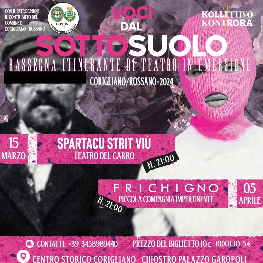 “Voci dal sottosuolo”, riparte da Corigliano-Rossano la rassegna itinerante di teatro in emersione. Si comincia il 15 marzo con “Spartacu strit viù”