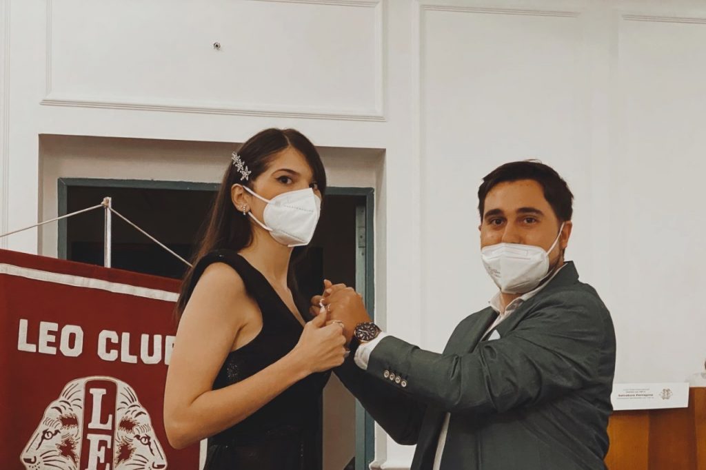 è stata eletta Presidente del Leo Club Crotone per l’A.S. 2021/2022.(in foto: il Past Presidente Stefano Arcuri mentre appone la spilla da Presidente a Lucia Frontera).